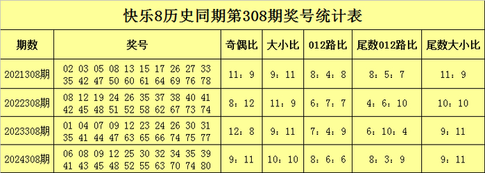 沧海快乐8第2025308期历史同期奖号尾数分析